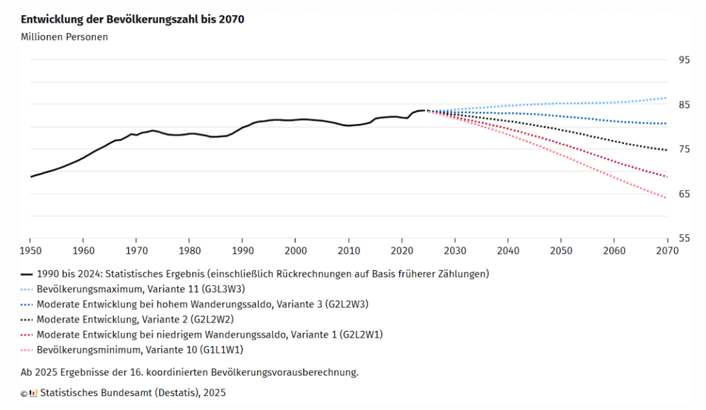2070 werden in Deutschland zwischen 63,9 Millionen bis 86,5 Millionen Menschen leben