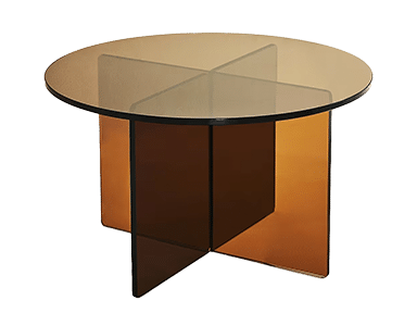 4. Couchtisch „Iris“, ⌀ 60 cm, 35 cm hoch, aus gehärtetem Braunglas, von Jotex, ca. 260 Euro