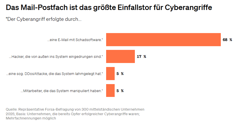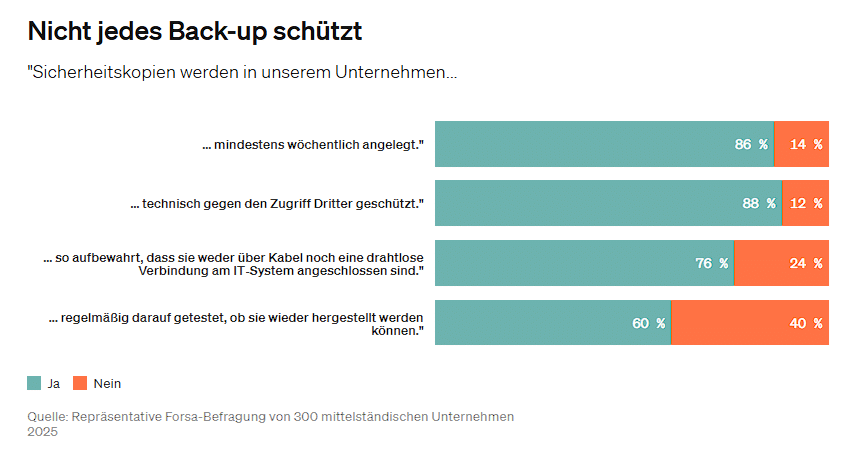 Wie die Umfrage zeigt, vernachlässigen viele Unternehmen technische und organisatorische Schutzmaßnahmen. Manche Unternehmen sind bei der Datensicherung zu nachlässig, andere führen notwendige Software-Updates nicht zeitnah durch. Dadurch entstehen vermeidbare Sicherheitslücken. Besonders auffällig: 64 Prozent verzichten auf Schulungen zur Sensibilisierung ihrer Belegschaft – obwohl 68 Prozent der erfolgreichen Cyberangriffe mit einer Phishing-Mail oder einer E-Mail mit Schadsoftware starteten.