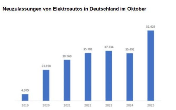 Der Marktanteil von Elektroautos liegt im laufenden Jahr bei 18,4 Prozent – im Vorjahreszeitraum hatte er noch 15,3 Prozent, im Jahr 2023 hingegen 17,1 Prozent betragen. Mit 52.425 neu zugelassenen Elektroautos war der vergangene Monat im Elektrosegment der stärkste Oktober aller Zeiten.