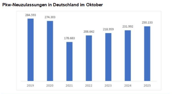 Im Gegenteil – so Gall: „Die potenzielle neue Chipkrise im Zusammenhang mit Nexperia-Chips droht zu Produktionsausfällen zu führen und könnte in den kommenden Monaten sinkende Absatzzahlen nach sich ziehen. Auch beim Thema Seltene Er-den bestehen erheblich Versorgungsrisiken. Insgesamt ist die aktuelle Situation ein weiterer Weckruf für die Autobranche, ihre Lieferketten extrem engmaschig zu über-wachen und gerade geopolitische Risiken sehr genau im Auge zu behalten.“ Im Gesamtjahr wird der Neuwagenabsatz nach Galls Einschätzung nur leicht über dem Niveau des Vorjahres liegen und damit mehr als 20 Prozent unter dem Wert von 2019 bleiben.