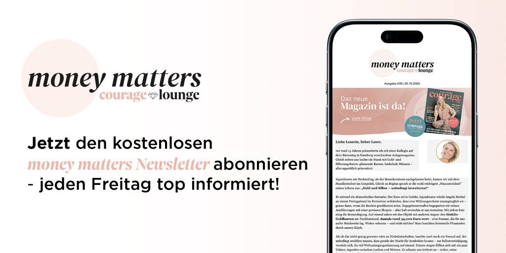Mit unserem kostenlosen Newsletter Money Matters bekommst du jeden Freitag Post von Courage.