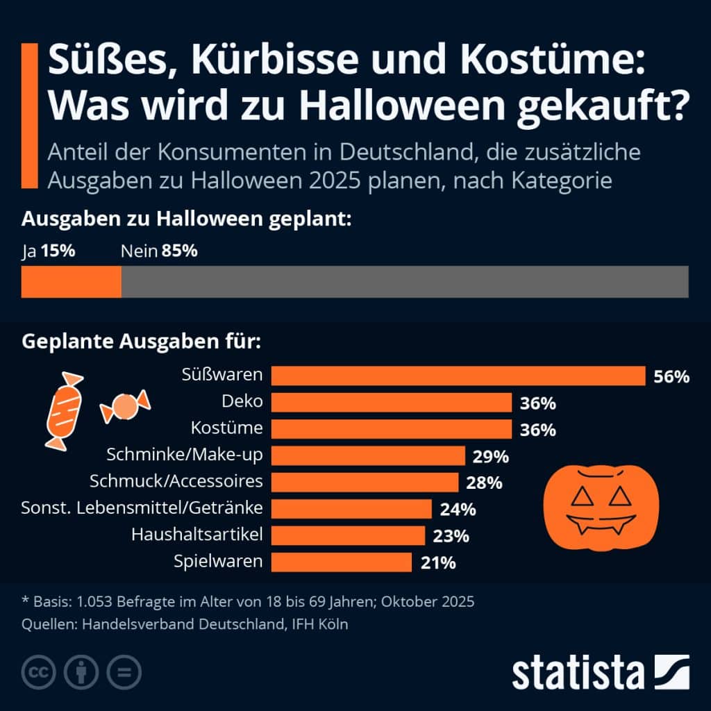 Während Halloween in Nordamerika schon lange ein sehr beliebter Feiertag ist, hat das Gruselfest in Deutschland keine wirkliche Tradition. Dennoch ist der Trend, wie so manch anderes amerikanisches Kulturgut, in den vergangenen Jahren zu uns herübergeschwappt. So gibt es immer mehr Halloween-Parties, Kinder verkleiden sich und ziehen auf der Jagd nach Süßigkeiten um die Häuser. Die zunehmende Beliebtheit von Halloween spiegelt sich auch im Einkaufsverhalten der Deutschen wider, wie Daten des Handelsverbands Deutschland zeigen. Denen zufolge liegt der Anteil der Befragten Konsument:innen, die dieses Jahr Ausgaben zu Halloween planen bei 15,2 Prozent und hat sich damit seit 2018 etwa verdoppelt.