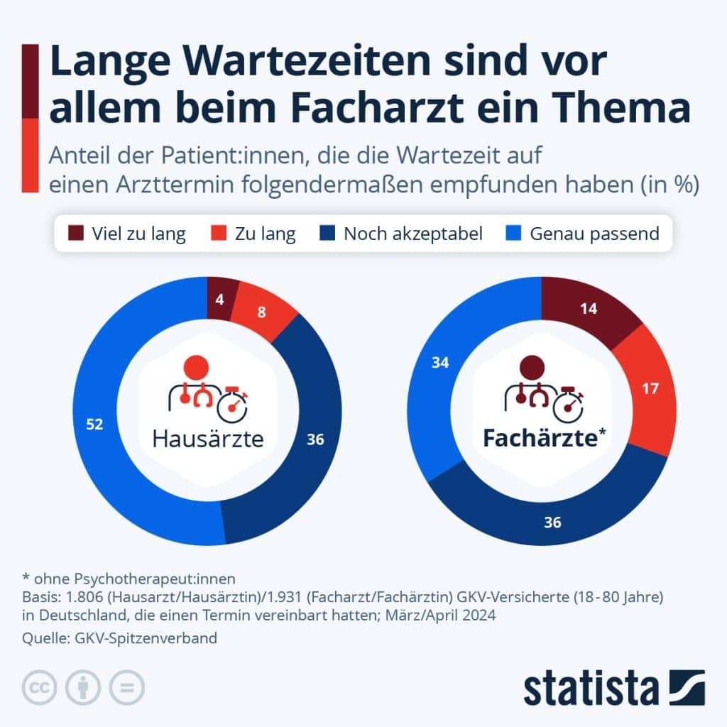 Viele Menschen empfinden die Wartezeiten auf einen Termin bei Haus- oder Facharzt als zu lang. Eine Studie im Auftrag des GKV-Spitzenverbands, der nach eigenen Angaben zentralen Interessenvertretung der gesetzlichen Kranken- und Pflegekassen in Deutschland, bestätigt diese Wahrnehmung nur teilweise.